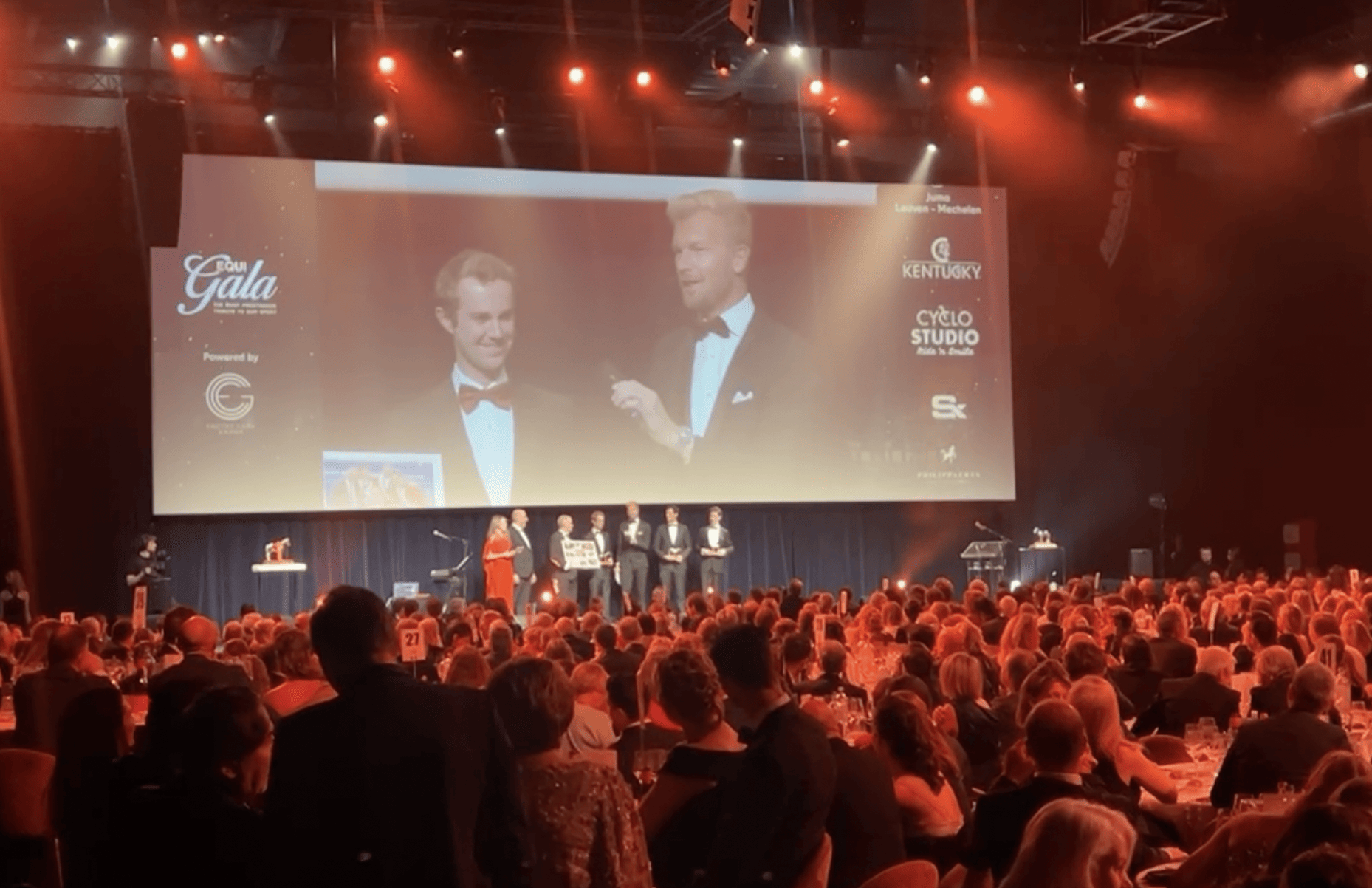 Gilles Thomas nam de eerste prijs van de avond in ontvangst, tijdens het Equigala! Na het voorgerecht mocht de Belgische nummer één springruiter, nogmaals het podium op voor de Award van Team van het Jaar! Het Belgische Senioren Jumping Team gaat met de Award huiswaarts.
