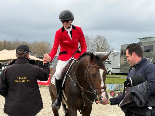 Macedoine en Jos Gevaerts' gefokte BWP-merrie bleven op vrijdag net geen twee seconden voor op Stephan Verschuere en zijn Cela van Koekenhuyze (Casallo Z, fokker: Frank D'Haenens). Oost-Vlaming, Benny Naessens vervolledigde de top drie van deze hoofdrubriek. Naessens verzekerde een Belgisch podium met de achtjarige Gatsby du Tillard (President).
