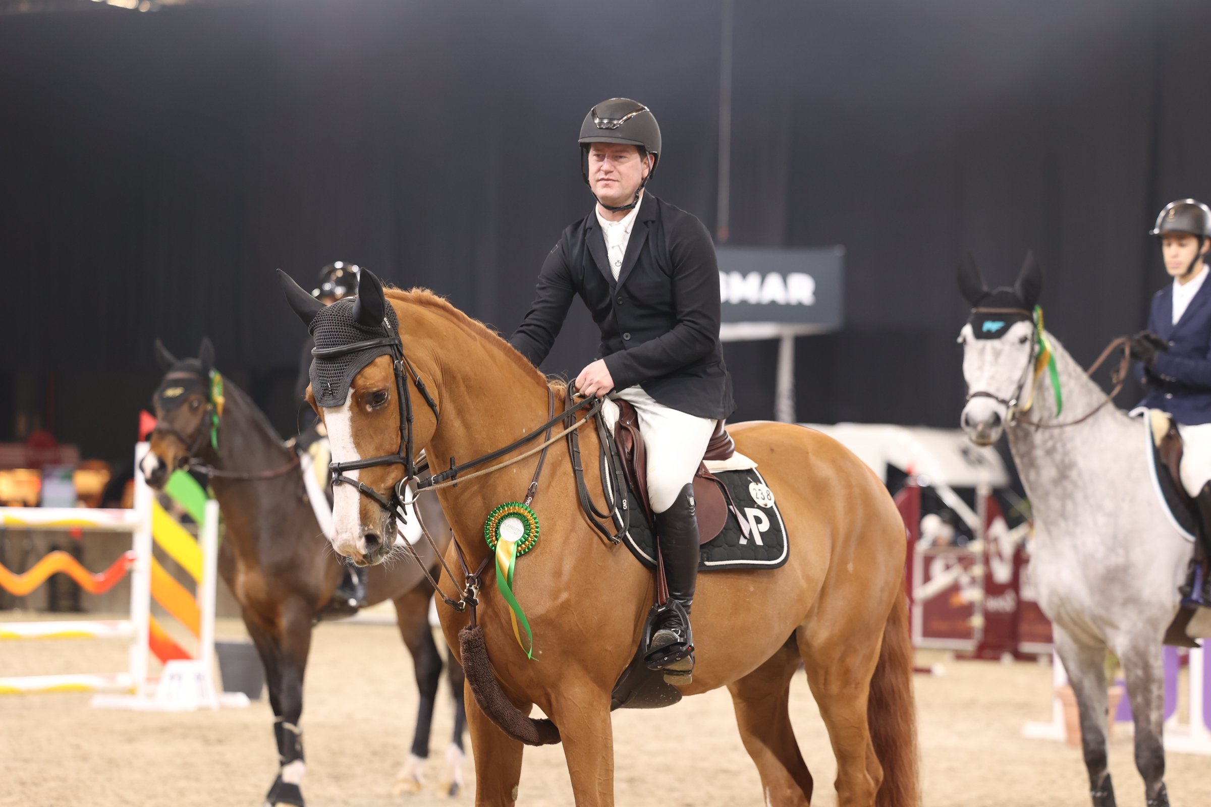 Jean-Christophe de Grande plaatste zich eveneens in de top tien. In het zadel van Massimo Z (Menko vd Wellington) sprong hij foutloos naar de zevende plaats in een tijd van 60,64 seconden.